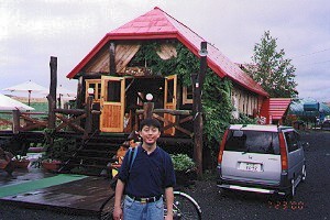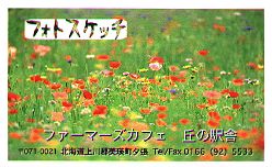 過了親子之木實在不行了,中午還沒吃呢,看到路邊有一家 "丘の駅舍",是自家野菜的小店,就進去了。MENU 看不懂,還好小姐 NORIKO 會說點英文,就點了一杯牛奶跟套餐,其中的烤飯團跟哈蜜瓜真是好吃極了,而且小房子也很美麗喔。吃完飯又到外面照相,欣賞他們的花田。NORIKO 也過來跟我們聊天,很親切,還叫我們小心不要感冒了,真是令人覺得溫暖!