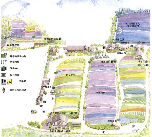 | 7月 | 上旬 ~ 薰衣草(紫基),花人的田,霞草,藍芙蓉 中旬 ~ 薰衣草(紫色),彩色的花田,罌粟花 下旬 ~ 薰衣草,小町草,矢車菊 |